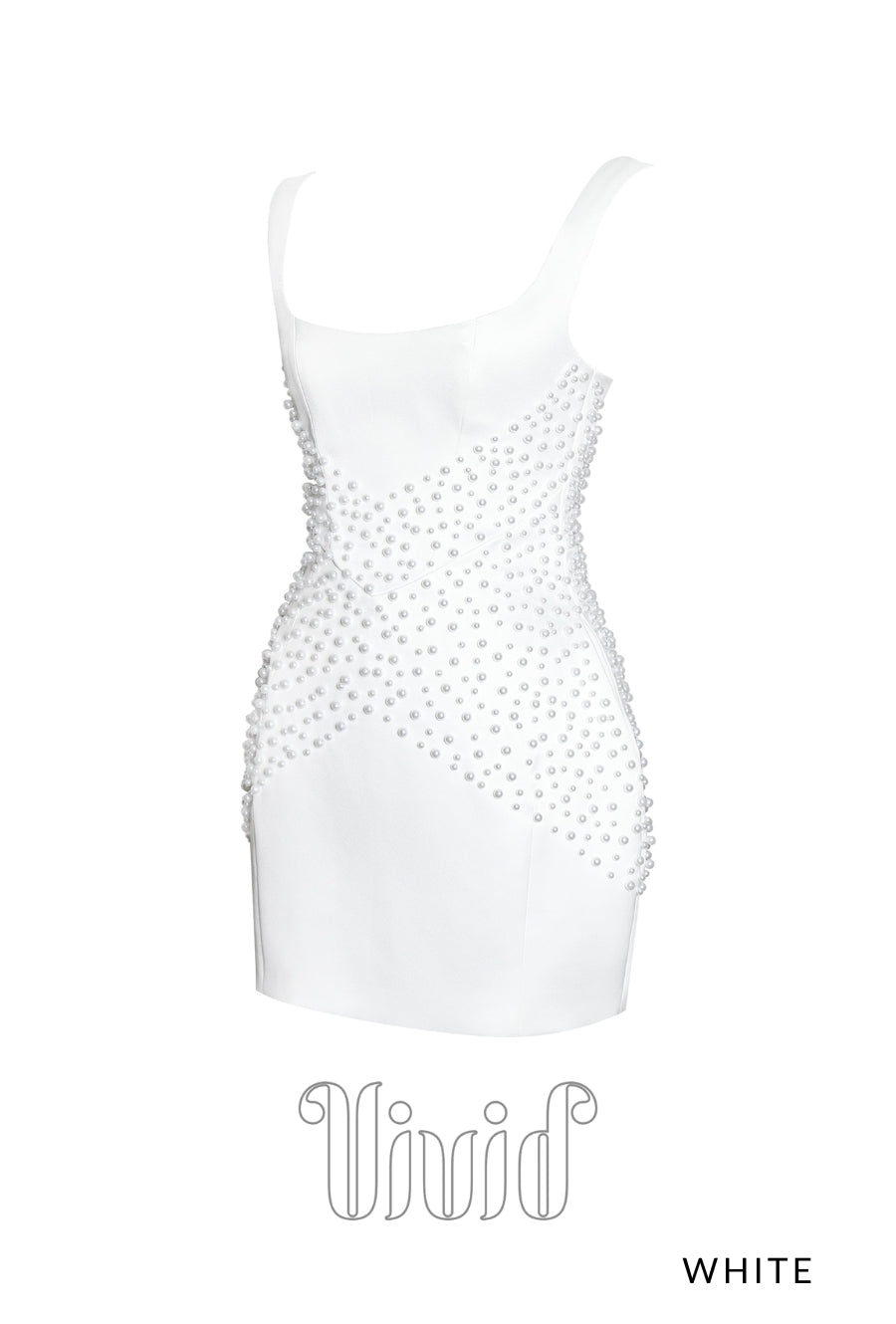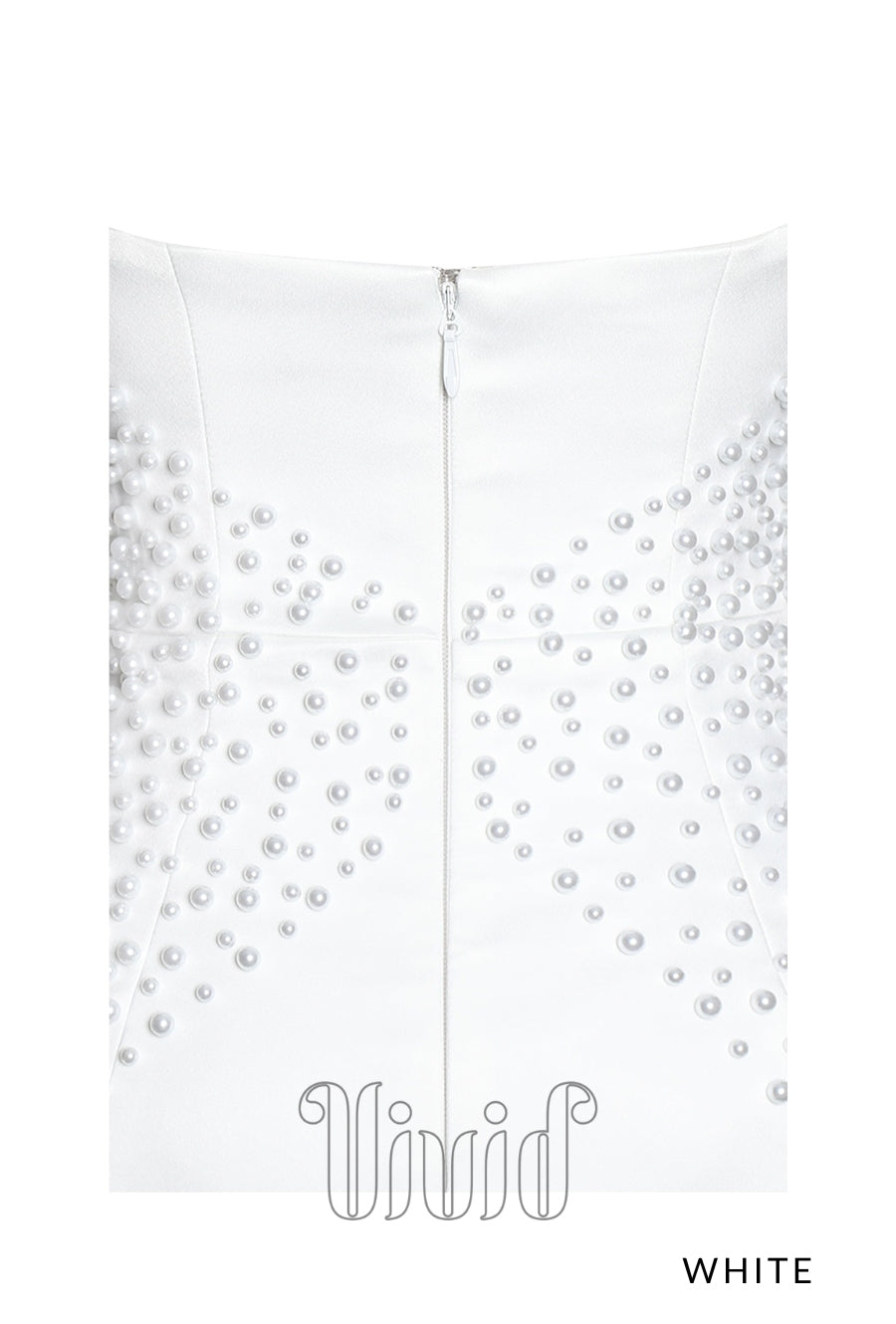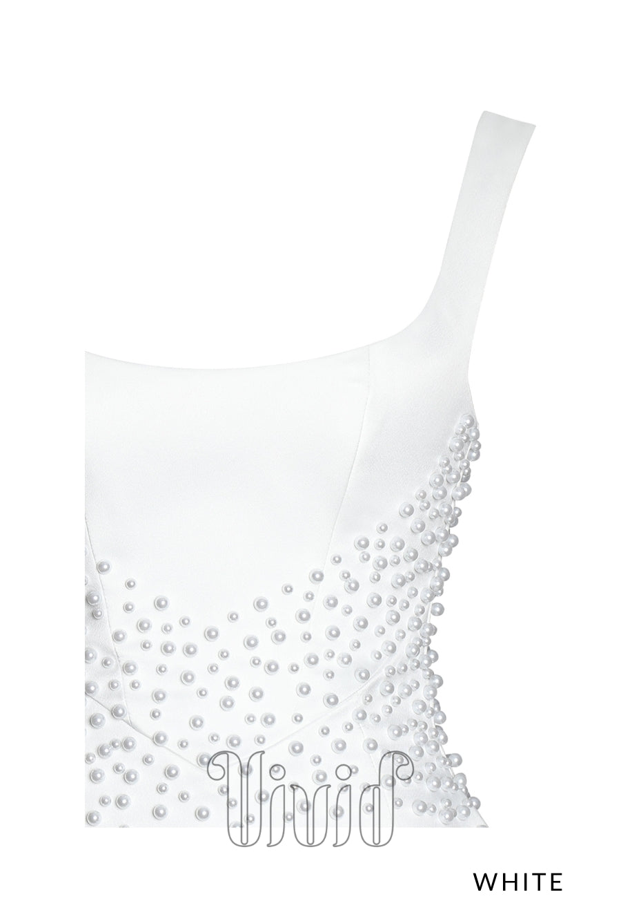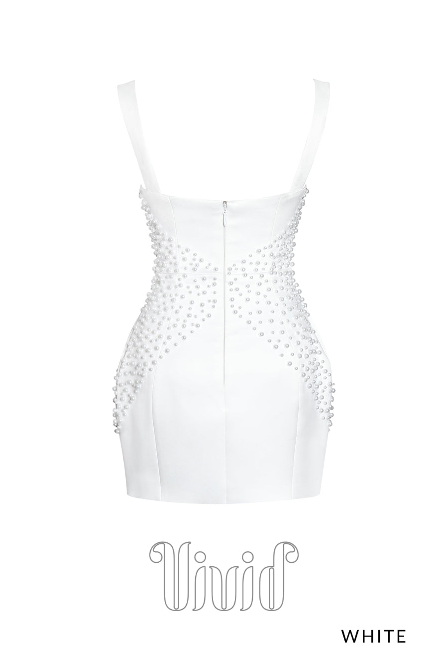 Embrace sophistication with the Mimi Dress, a timeless masterpiece perfect for weddings, engagements, formal events, or any summer party. This stunning sleeveless dress features a chic square collar and a flattering V-shaped waistline that accentuates your silhouette. The elegant cocoon-shaped skirt adds a modern touch, while delicate pearl decorations and intricate beaded details offer a hint of luxury. Designed with decorative seams for added structure, the dress is fully lined for comfort, with an invisible zipper and discreet invisible pockets for a flawless finish. Whether you're dancing the night away or celebrating a special birthday, the Mimi Dress ensures you’ll shine with effortless grace.